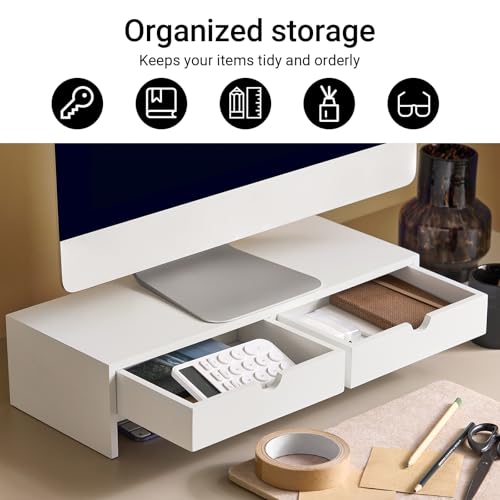 - [Monitor Stand with Drawers for Desk Accessories]: Featuring two handy drawers, this desk shelf provides storage for office accessories, cables, gadgets, and other small items—keeping your workspace tidy and organised