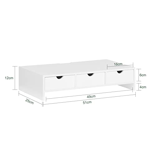SoBuy - SoBuy BBF03-W Monitor Stand Desk Organizer with 3 Drawers - 51x25x12cm, White