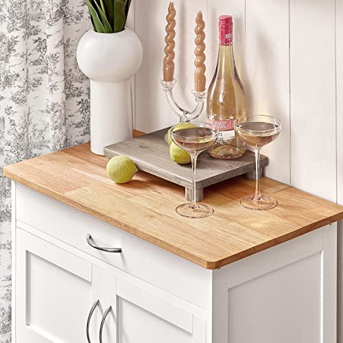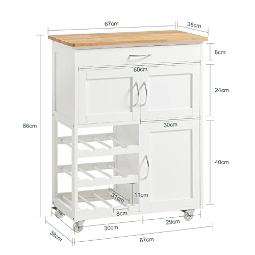SoBuy - عربة تقديم الطعام مع رفوف زجاجات ودرج و3 أبواب من سو باي® - عربة مطبخ عصرية من خشب المطاط الطبيعي وخشب ام دي اف، عرض 67 سم × ارتفاع 87 سم × عمق 37 سم، FKW45-WN