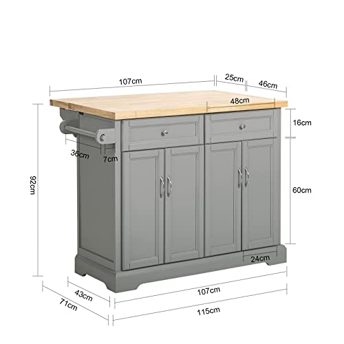 SoBuy - دولاب مطبخ ترولي متحرك خشب لمنتصف المطبخ بسطح عمل قابل للتوسيع لتقديم الطعام من سو باي، FKW71، رمادي فاتح، مقاس تقريبي: 1.15 م × 92 سم