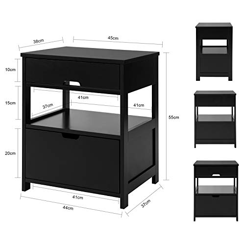 SoBuy - ترابيزة جانبية بدرجين ورفين من سوباي، FRG258-SCH، أسود، عرض × ارتفاع × عمق حوالي 45×55×38 سم، خشب ليفي متوسط الكثافة (E1)