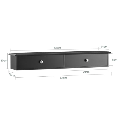 SoBuy - رف جداري مع علاقة معاطف من سوباي، FRG43-SCH، رف معلق للخزائن وغرف التخزين مزود بدرجين، مقاس 64 × 15 × 10 سم، أسود