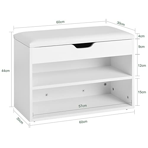 SoBuy - منظم أحذية بمقعد علوي وخزانة بلون أبيض من سو باي® موديل FSR25-W مقاس 60 × 44 × 30 سم