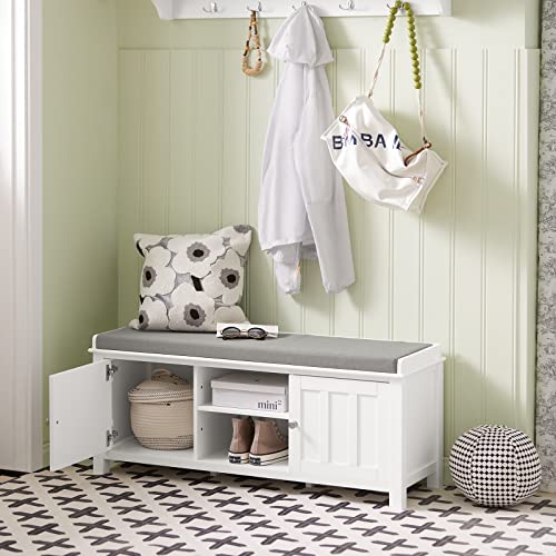 SoBuy - SoBuy FSR35-W,White Storage Bench with 2 Doors & Removable Seat Cushion,Shoe Cabinet Shoe Bench