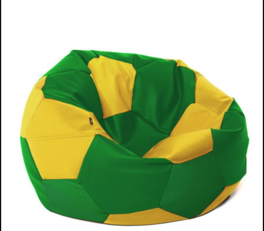 - SOCCER DESIGN: Unique football-inspired bean bag chair featuring vibrant green and yellow panels in an attractive geometric pattern