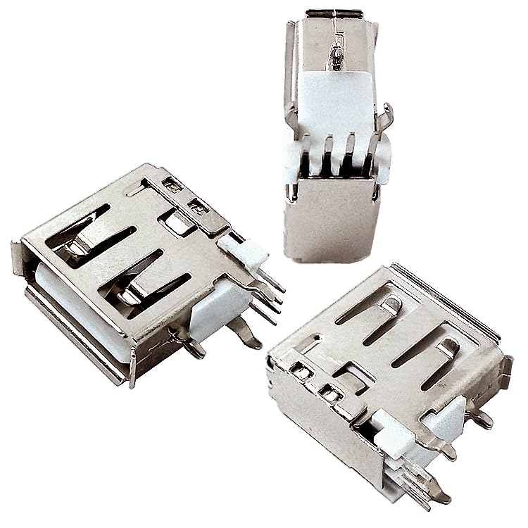 - 5pcs Female Port USB Socket Jack Repair Computer Interface Side Needle Curved Mouth Data Length 14mm Type A AF 90 Degree Replacement Adapter Standard DIB 4pin Connector