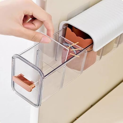 - التنظيم: افتح الغطاء المتحرك وضع الشرابات، الملابس الداخلية، أو أي مستلزمات ترغب في تخزينها داخل الأرفف الشفافة.