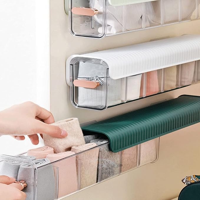 Generic - منظم شرابات وملابس داخلية و رابطة العنق ، بتصميم شفاف وغطاء متحرك، قابل للتثبيت على الحائط لتوفير المساحة وترتيب الأدراج والأغراض المنزلية بسهولة وأناقة. (ابيض, 1 قطعة)