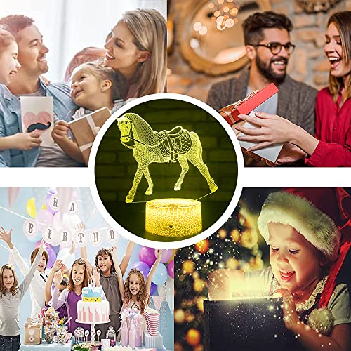 - ⭐【Vivid & Interesting Visual Effect】With optical technology, the flat 2D acrylic panel of our horse night light with laser engraving can show up a vivid horse figure when it light up. Ideal as a bedside lamp and horse decor for girls room.