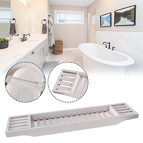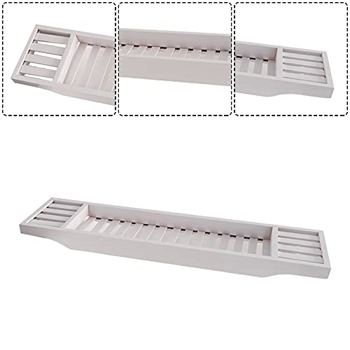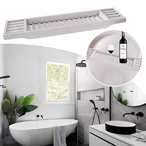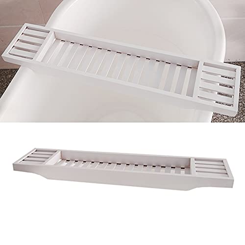 Soekodu - رف حمام خشبي من البامبو ملحقات حمام مناسب للاستخدام صينية حمام خشبية لتنظيم الحمام وترابيزة حمام للقراءة وصينية حمام لزجاجات العصير (أبيض)