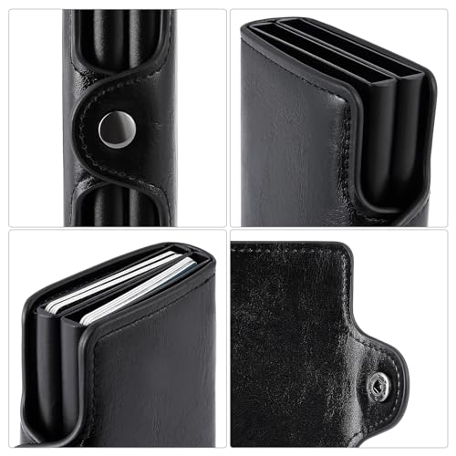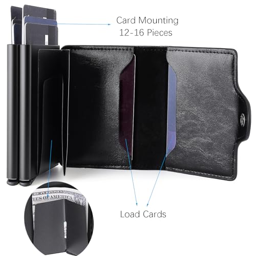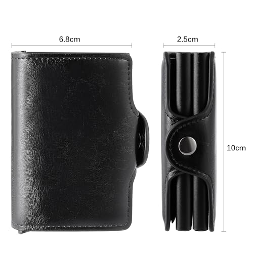 - COMPACT AND PRACTICAL - This mens wallet can hold 14-16 cards with two card slots and one bill compartment; The double-layer aluminum card holder provides ample storage space and the wallet measures only 10 x 6.8 x 2.5 cm, which makes it easy to fit into any pocket without being too bulky like traditional wallets