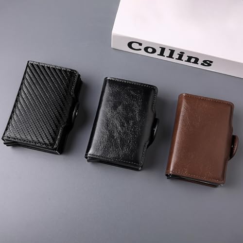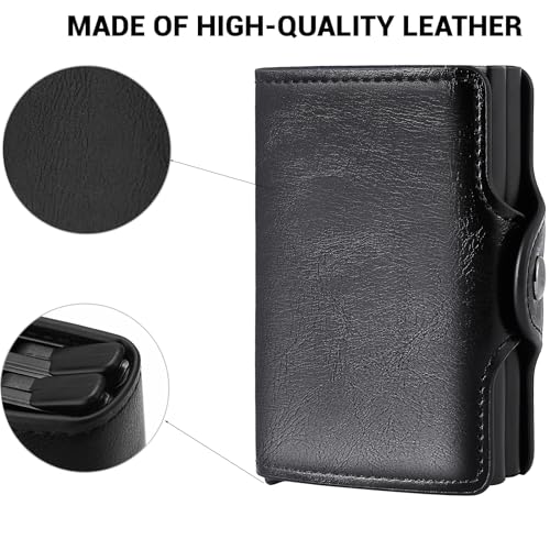 - QUICK ACCESS TO CARDS: Our small man wallet comes with a pop-up design that allows you to automatically pull out all cards by pressing the button below. So the cards stay neatly stacked and you can quickly find what you need!