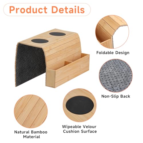 SHILIPAIJC - Sofa Arm Tray with Mats for Cups, Folding Sofa Armrest Tray, Sofa Arm Table Non-Slip Wooden Sofa Tray for Snacks, Remover, Cups