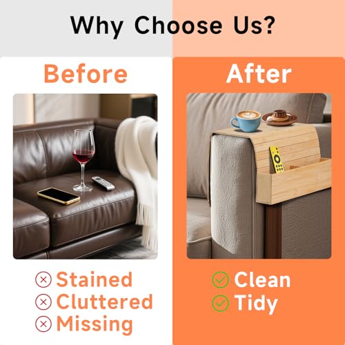 - 【Quality Material】Our sofa tray is made of natural bamboo wood, which is safe and durable, and does not contain any toxic substances, which can be used with peace of mind while adding a natural and elegant atmosphere to your living room.