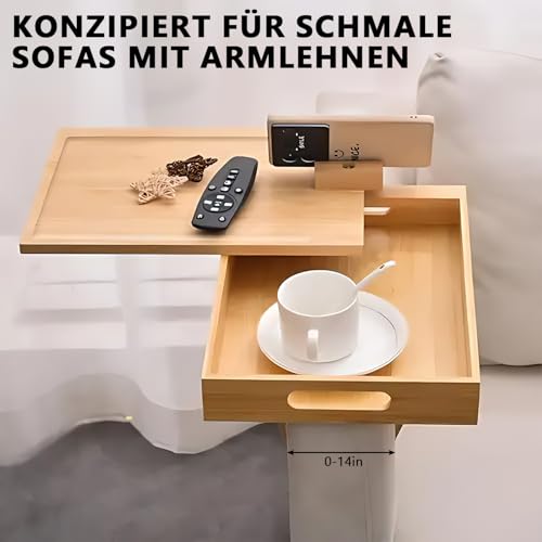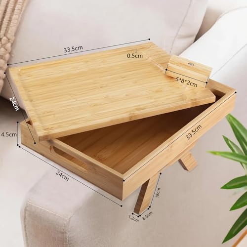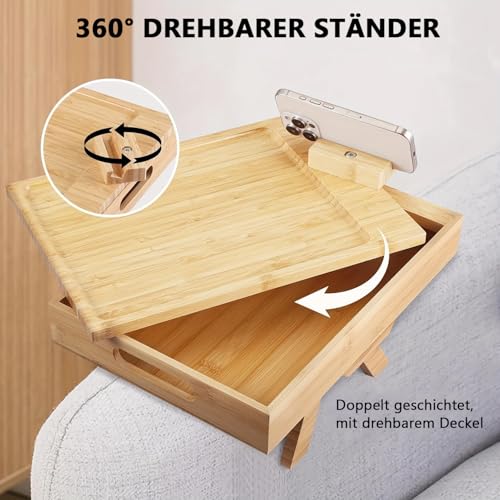 - Sofa table with double division: our sofa armrest tray has a double divider and can be rotated 360°, so you can adjust the sofa armrest tray according to your needs. The second tier is perfect for storing remote controls or glasses and is ideal for saving space and minimising mess!