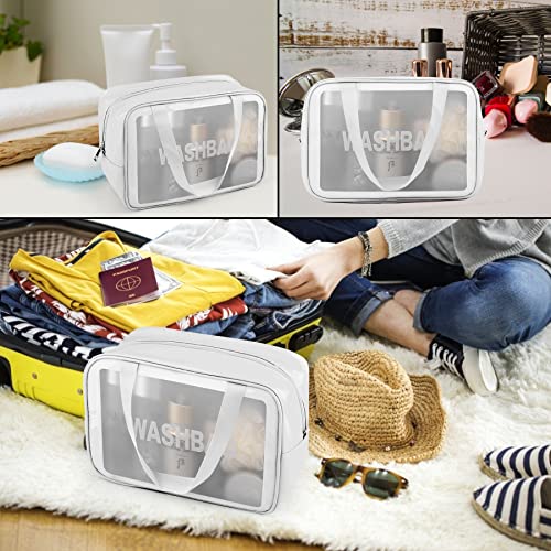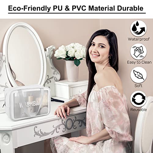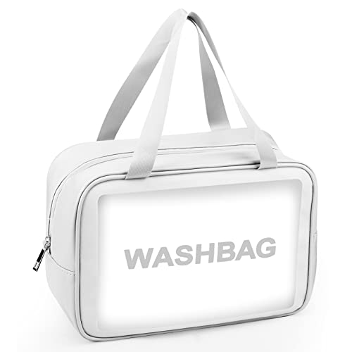 Sofore - Clear Travel Toiletries Bag Waterproof Cosmetic Makeup Wash Bags PVC Portable Organiser Case Carry Pouch for Women Business Bathroom, White, L, Bag Organiser