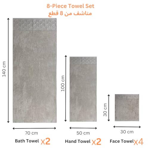 Sol Suave - Soft Bath Towels Set, Absorbent Fade Resistant 100% Cotton, Highly Absorbent Towels for Bathroom, Gym, Hotel, and Spa (Silver, 2 Hand Towels & 2 Bath Towels & 4 face wash)