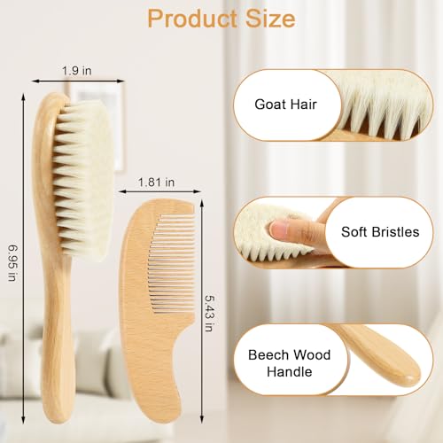 - Natural, Soft & Safe: Our baby hair brush and comb set is made with the finest Pear Wood and organic Goat Hair bristles, specially designed for delicate skin to help untangle baby hair with luxurious softness