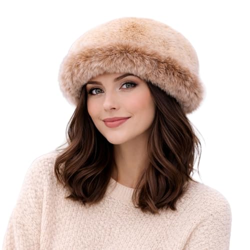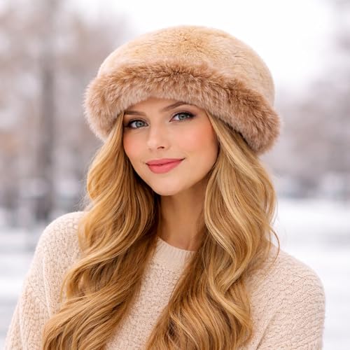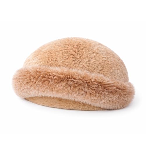 Generic - قبعة شتوية باكيت من الفرو الصناعي الناعم للنساء – قبعة دافئة وخفيفة من فرو المنك الصناعي بتصميم أنيق – مناسبة للاستخدام اليومي والخروج في الطقس البارد (NO:199)
