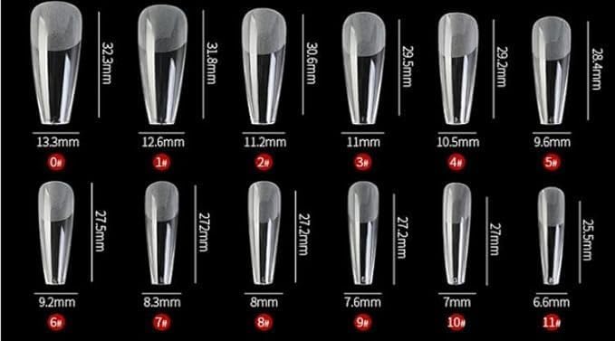 - مقاسات متنوعة: تأتي أطراف الأظافر الصناعية في مجموعة متنوعة من المقاسات لتناسب أسرة الأظافر المختلفة، مما يضمن ملاءمة مثالية لكل إصبع.