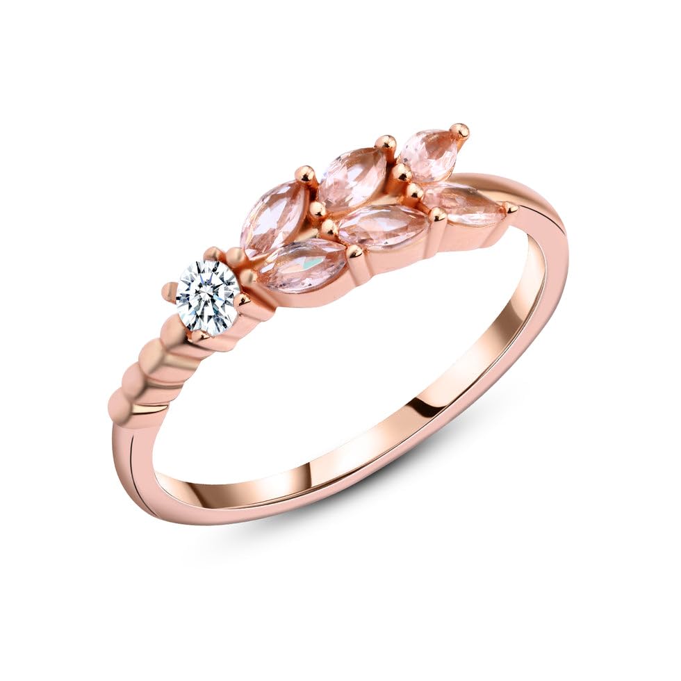 Generic - خاتم بتصميم اوراق شجر ناعمة - فضة عيار 925 مطلي بالذهب الوردي مع حجر مورجانيت طبيعي، مقاس 8