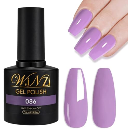 WINZI - Soft Mauve Gel Nail Polish 7ML, Light Purple Soak Off UV LED Gel Polish, Smooth Application, High Gloss Finish, Elegant Color for Salon Manicure and DIY Nail Art at Home (086)