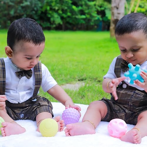 - Each ball features a unique, textured surface designed to engage tactile senses, helping infants develop fine motor skills through touch and manipulation.