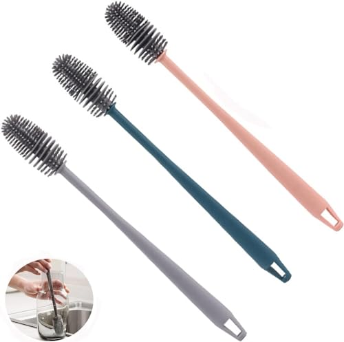 - LONG HANDLE FOR HARD-TO-REACH AREAS: The ergonomic extended handle gives you full access to tall bottles, thermos flasks, travel mugs, and deep jars. Designed for comfort and control, it minimizes hand strain and ensures efficient cleaning every time. Whether used in the kitchen, baby nursery, or office, it helps you reach places other brushes simply cannot.