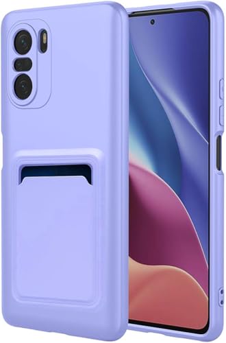 Generic - جراب حماية مصنوع من السيليكون الناعم مع حامل بطاقات للموبايل متوافق مع بوكو f3 ، تصميم عصري وناعم ، تصميم محفظة (بنفسجي فاتح)