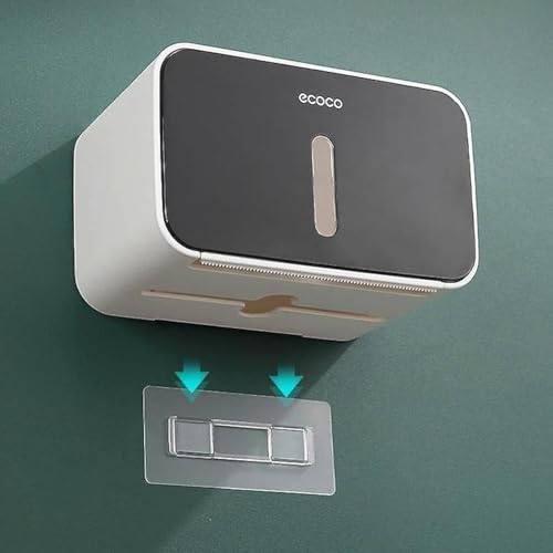 Generic - علبة مناديل لاصقة ناعمة الملمس مع حامل بكرة - موزع مناديل وجه يثبت على الحائط بدون ثقب للحمام والمطبخ والسيارة - منظم لاصق آمن لسهولة الوصول اليومي
