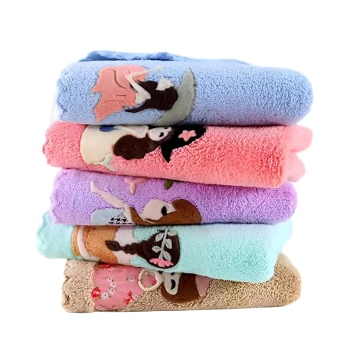Generic - Soft Towel Set-A set of 5 soft woolen towels with colorful cartoon designs for faces and beauty, each piece in a different color, ideal for home bathrooms, gyms, hotels, fit all family members, small