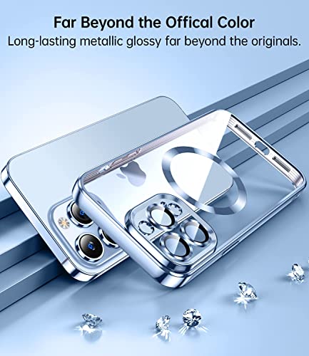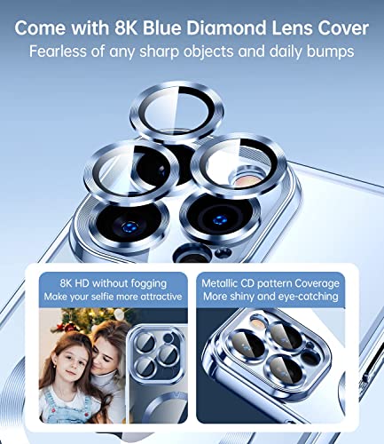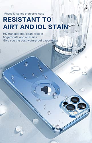 Generic - جراب موبايل خلفي شفاف ناعم من البولي يوريثين الحراري لموبايل ايفون 14 (6.1 بوصة) بفتحة لوجو فاخرة مع حماية للعدسة باطار ذهبي (ازرق سييرا)، حافظة بسيطة