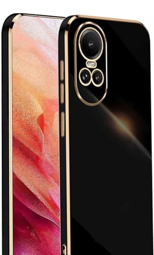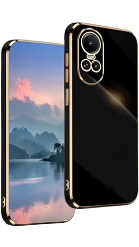 Generic - Soft TPU Silicone Phone Case Anti-Drop Anti-Scratch Colorful Phone Cover [Gold Plating Series] (Black, RENO 10 5G)