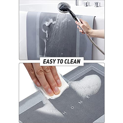- Innovative absorbent bath mat: different from conventional bath mats with a plush surface. The non-slip microfibre bath mat has a smooth surface and can be cleaned with a brush or sponge. This saves time and effort, so you don't have to worry about lint and dust. Keep the floor clean and dry to keep your home comfortable and clean.