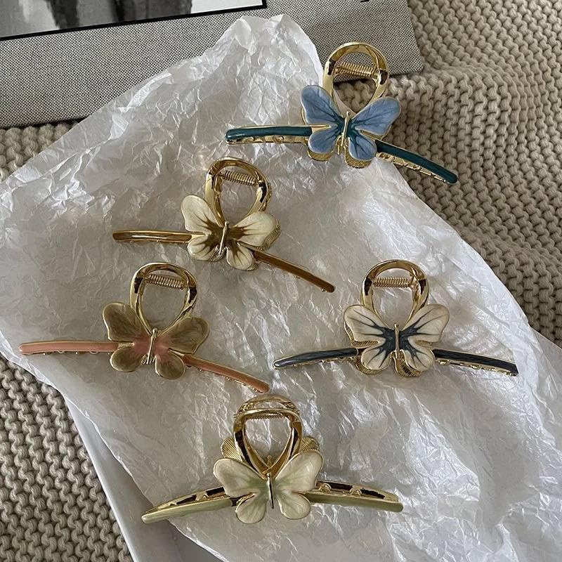 Generic - مشابك شعر معدنية على شكل فراشة من سوفت راب، مشابك شعر كبيرة مضادة للانزلاق، مشابك شعر قوية التثبيت، اكسسوارات شعر عصرية للنساء والفتيات (رمادي داكن)