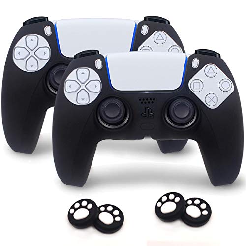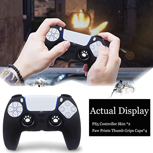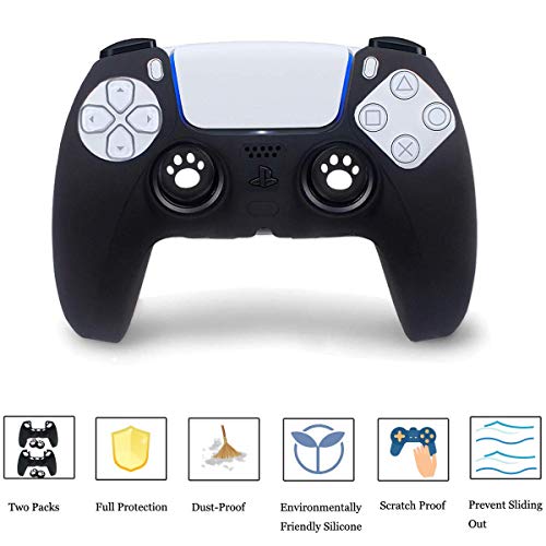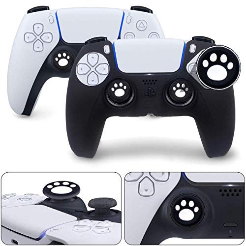 Sofunii - Sofunii 2 Pack Silicone Controller Skins Anti-Slip Cover Case Protector Sleeve for PlayStation 5 /PS5 Controller with 4 Pack Paw Prints Thumb Grips (Black)