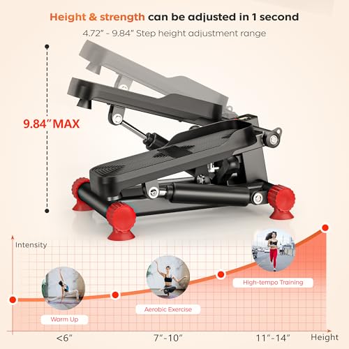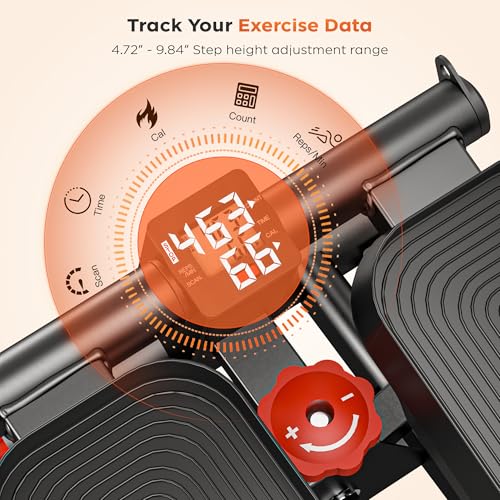 - 【Adjustable Resistance,Aerobic Exercise】This innovative stepper machine can adjust multiple stride heights, each corresponding to a different training intensity. A lower stride provides a gentle and relaxed workout, while a higher stride intensity simulates the challenge of climbing stairs and can burn more calories. Whether you are a beginner or a fitness enthusiast, you can find the appropriate intensity to improve your fitness level and gradually achieve the best exercise results