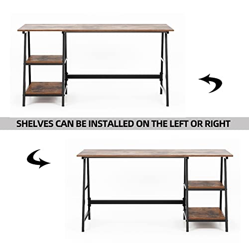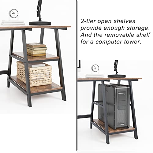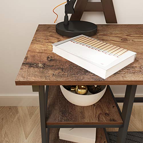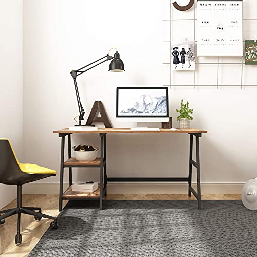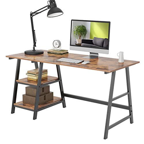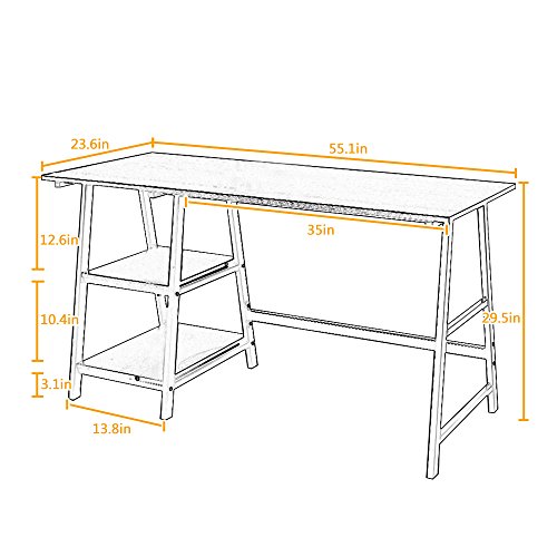 sogesfurniture - sogesfurniture 55 Inches Writing Computer Desk, Trestle Desk Study Desk, Laptop PC Desk, Home Office Desk Sturdy Table Study Table, Workstation with Storage Shelf, BHCA-Tplus-140FG