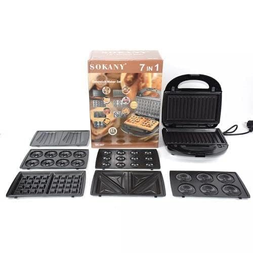 SOKANY - ماكينة صنع السندوتشات ومحمصة الخبز الكهربائية المحمولة 7 في 1 طراز 907 من سوكاني