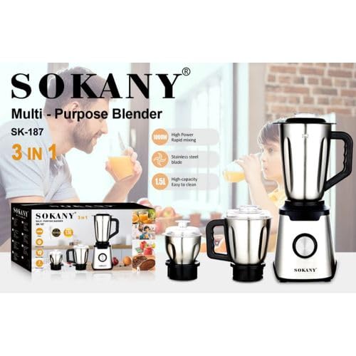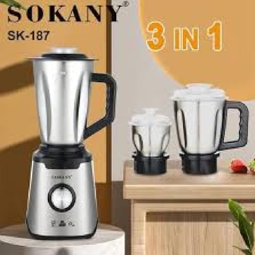 SOKANY - خلاط - SK-187 - فولاذ مقاوم للصدأ - 3 * 1 - 1000 وات - 1.5 لتر من سوكاني، 1000.0 واط، متعدد الألوان