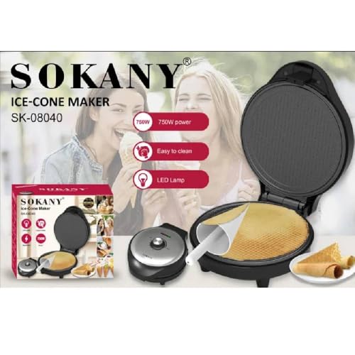 SOKANY - ماكينة صنع مخاريط الثلج من سوكاني، طبق واحد، 750 وات، أسود وفضي - SK-08040