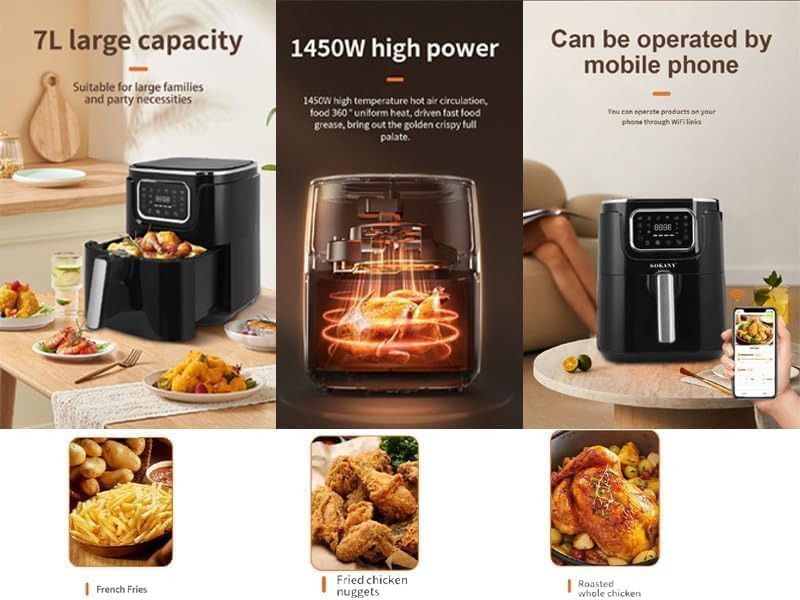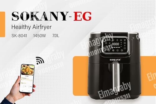 SOKANY - Sokany Smart Essential Air Fryer,1450W,7L Capacity,SK-8041,Bluetooth,Black, 220V supply voltage International warranty
