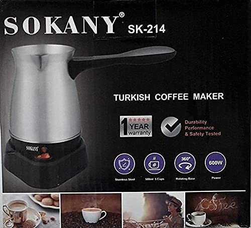 SOKANY - ماكينة تحضير القهوة التركية سوكاني 600 واط (فضي، 2725603995642)
