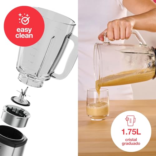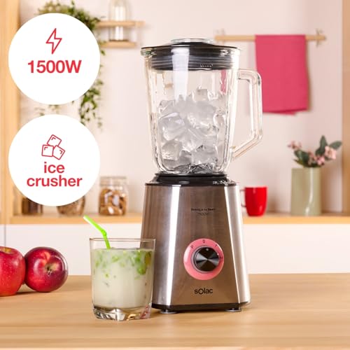 Solac - خلاط سولاك BV5728 بيتي والتنين 1500 وات، 6 شفرات من الفولاذ المقاوم للصدأ، 2 سرعات + تربو، طحن الثلج، وعاء سعة 1.5 لتر مع مقياس قياس، فتحة تعبئة، ونظام أمان
