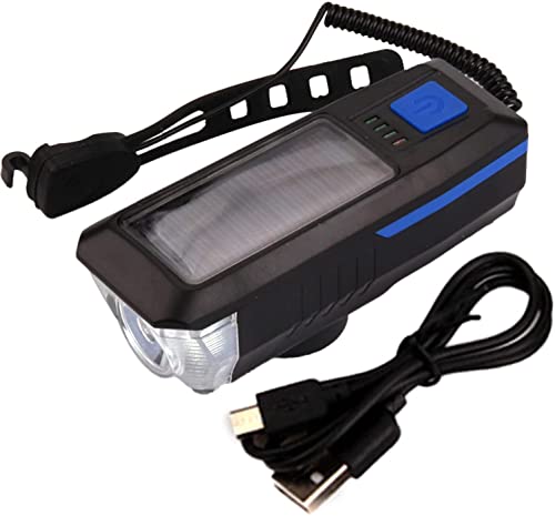 KATGROCHIR - Solar Bike Lights, Front Bicycle Light with Horn, 3 Modes are Available, Solar Power and USB Charging, IPX4 Waterproof for Mountain Bikes Road Bikes Night Riding Camping Safety Warning (Blue)