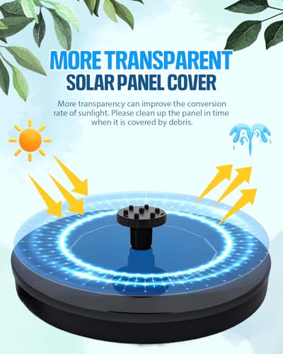 - Usage Instructions - For best results with your solar power fountain, position the pump in a sunny area of your bird bath or pond, clean the floating solar fountain regularly to prevent this pump from clogging. Gently wipe the solar panel weekly to maintain efficiency, and avoid leaving the device in standing water during freezing weather to extend its lifespan.