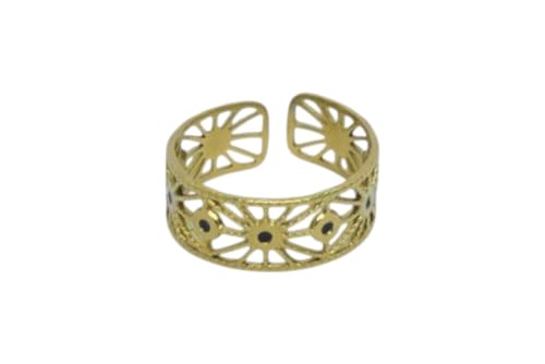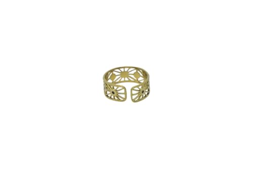 Generic - خاتم مفتوح من الستانلس ستيل بتصميم شمسي - ذهبي