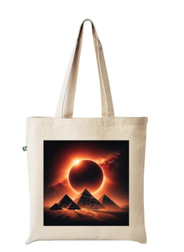 Generic - Solar Eclipse Pyramids Canvas Tote Bag, Natural Cotton, Egyptian Theme Shopping Bag