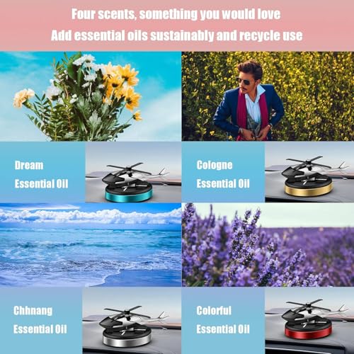ELTERAZONE - Solar Energy Rotating Helicopter Diffuser – Car Air Freshener, Long-Lasting Fragrance, Essential Oil Diffuser, Odor Eliminator, Home & Office Decor (Gold)