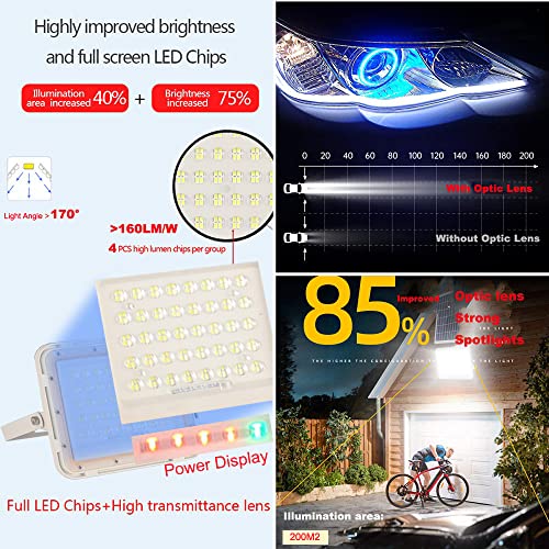 GUANGDONG ZOWELL LIGHT TECHNOLOGY CO.,LTD - مصباح كاشف شمسي 2000 لومن للاماكن الخارجية، من 160 مصباح LED تلقائي التشغيل/الايقاف من الغسق الى الفجر بريموت كنترول، مصباح امان IP67 LED مقاوم للماء للحديقة والطريق والبركة والسقيفة والحظيرة والجراج